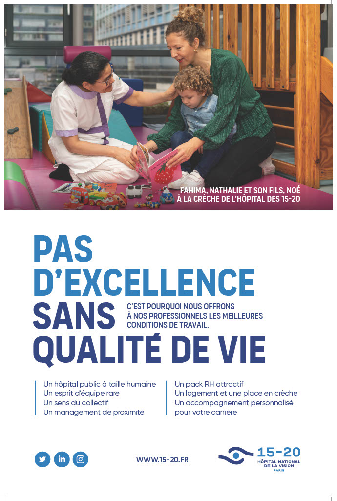 L’hôpital national des 15-20 est un hôpital d’ophtalmologie de référence national. Il jouit d’une excellente image auprès des professionnels médicaux pour son haut niveau d’expertise, notamment en matière de chirurgie. L’enjeu pour l’établissement : réussir à attirer et à fidéliser les personnels non médicaux, qui le connaissaient moins, voire pas.